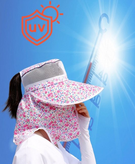 [선커버]꽃무늬 야외 매쉬소재 UV 완벽차단 햇빛 가리개 모자 2개(핑크)